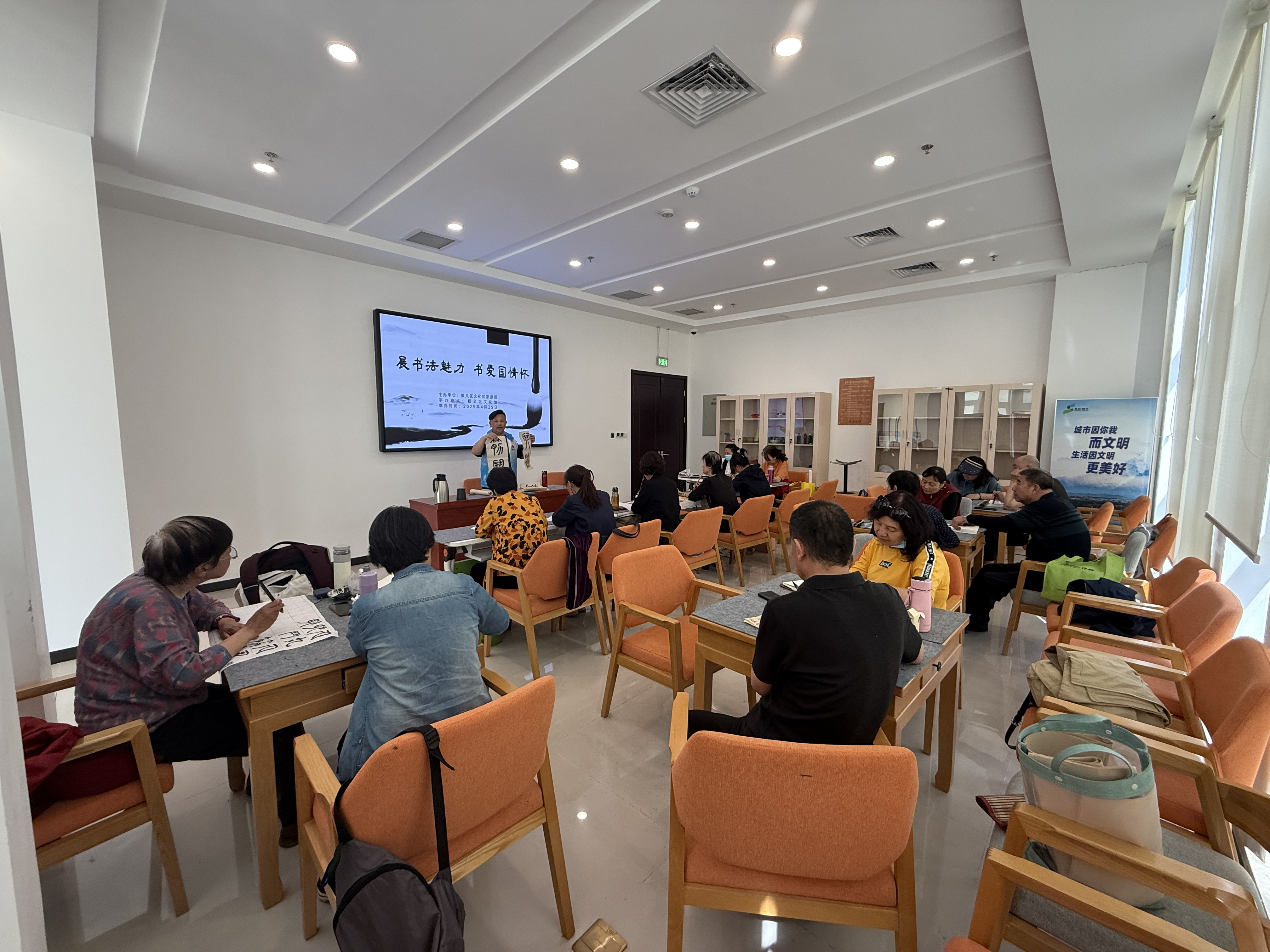 为积极培育和践行社会主义核心价值观,进一步弘扬中华优秀传统文化,增强人民群众的文化自信与爱国情怀,2025年4月29日,顺义区文化和旅游局在顺义区文化馆举办了“展书法魅力 书爱国情怀”践行社会主义核心价值观主题宣教活动。本次活动吸引了25名群众热情参与,不仅是一场文化艺术的盛宴,更是一次以书画为媒、凝聚民族情感的精神之旅。
