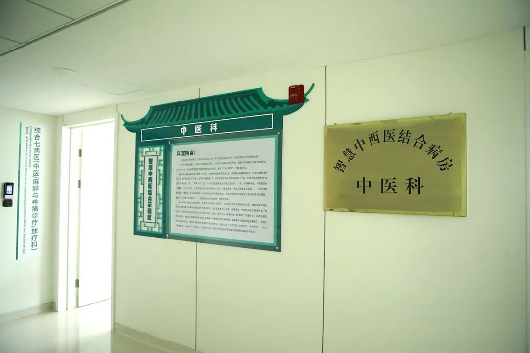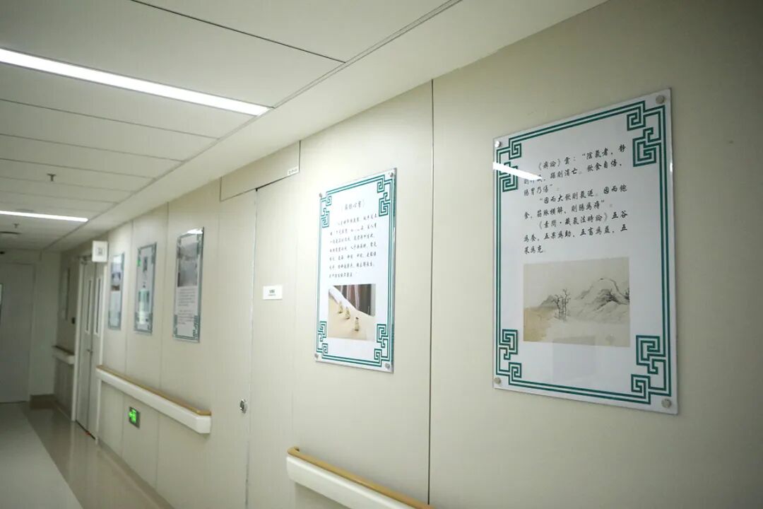 智慧中西医结合病房走廊悬挂中医典籍名句。
