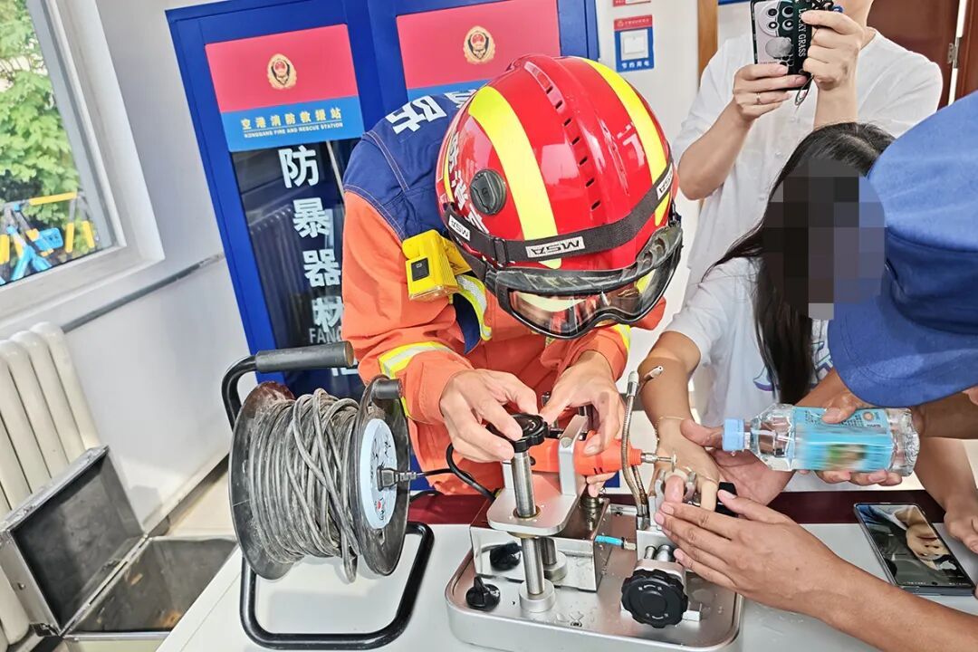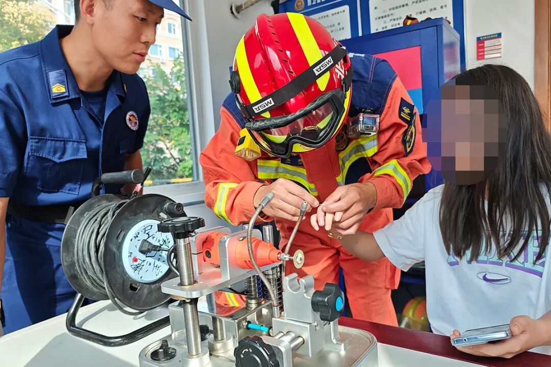 获救女孩连连向救援人员道谢:“太感谢你们了,刚才真的吓坏我了,还好有你们帮忙。”