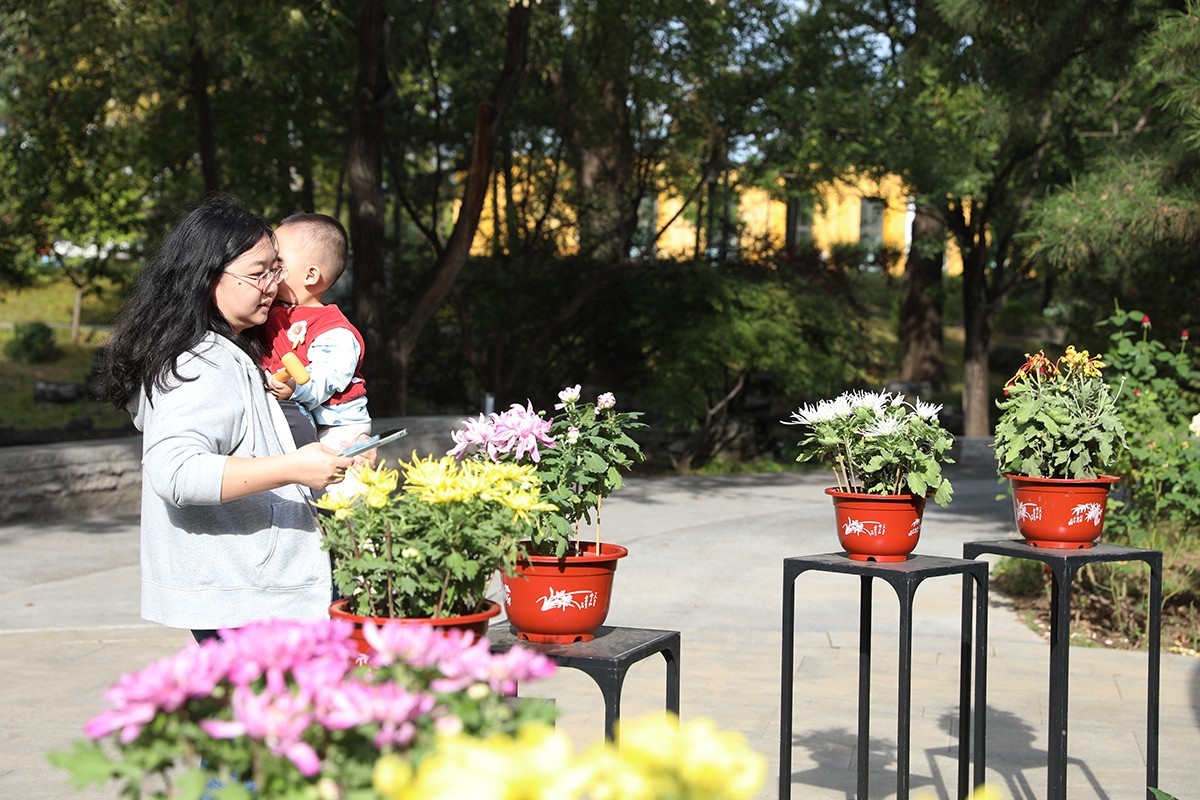 走进花博会主题公园,浓浓的节日气氛扑面而来。这里正在举办的菊花文化展,宛如一场菊花的盛宴,汇聚了“黄千丝”“粉国华”“红绣球”等20余种传统名品,吸引市民驻足拍照。