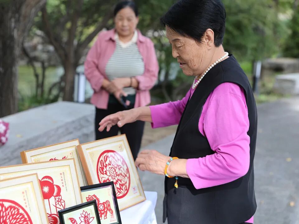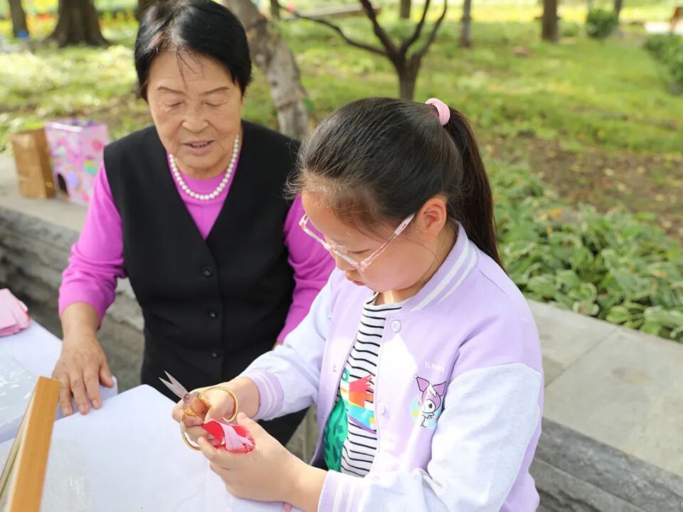 现场还有非遗传承人带来的面塑、剪纸体验,以及亲子互动的插花课堂。大朋友、小朋友沉浸在传统文化的魅力里,用双手创造属于自己的小作品。