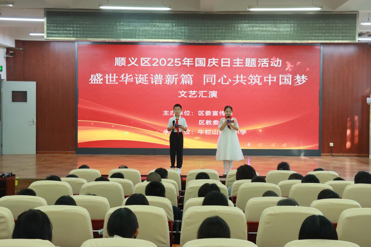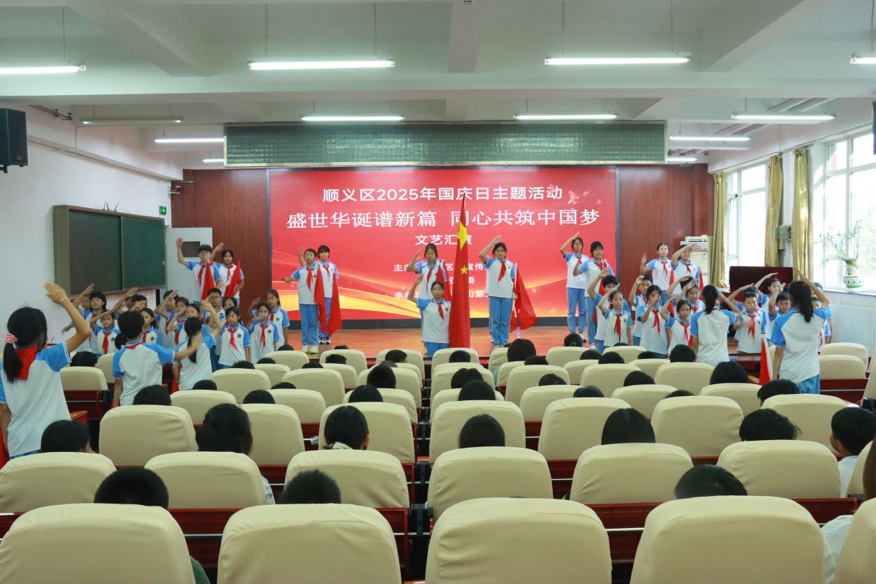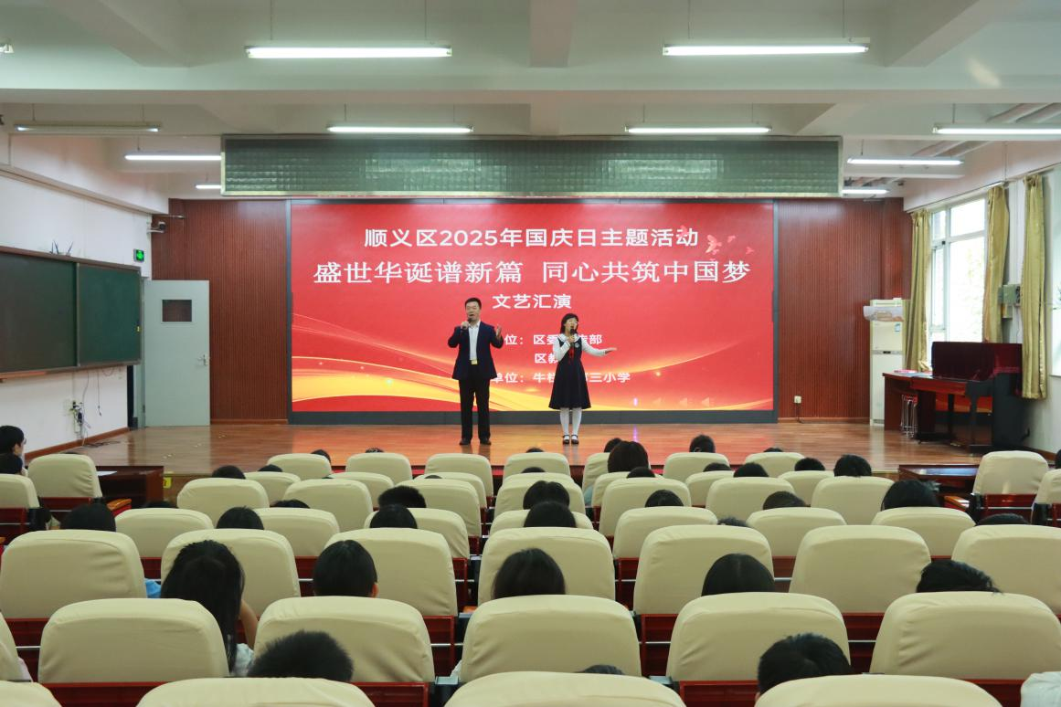 为庆祝中华人民共和国成立76周年,进一步激发广大师生爱国热情,凝聚奋进新时代的磅礴力量,顺义区委宣传部、区教委走进牛栏山第三小学举行“盛世华诞谱新篇同心共筑中国梦”国庆日主题活动。