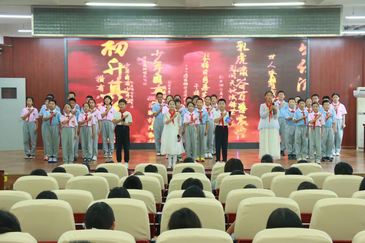 随后,《红领巾爱祖国》更添温情。“红领巾,胸前飘,爱祖国,我骄傲……”学生手抚胸前的红领巾,声音清澈得像山间的泉水。“努力成为社会主义建设者和接班人,为祖国奋斗拼搏”是“红领巾们”最纯真的告白,无需修饰,却最能打动人心。