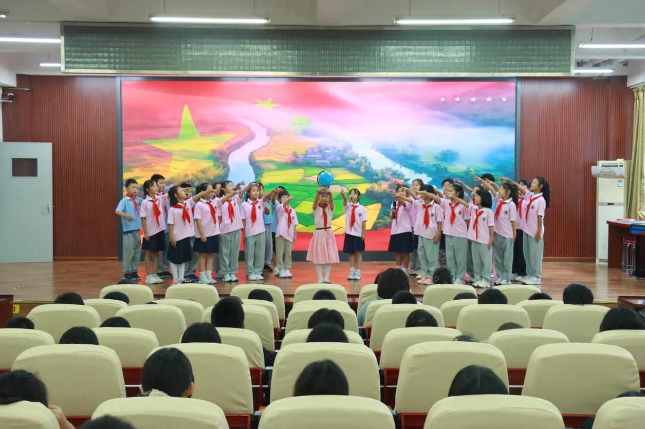 诗朗诵《我爱您祖国》同样令人动容。同学们手捧地球仪,目光专注而深情,仿佛将祖国的山河湖海、城市田野都抱进怀里,共同用稚嫩而坚定的声音,诉说着对祖国每一寸土地的热爱,表达着“无论身在何方,祖国永远在我心中”的赤子情怀。