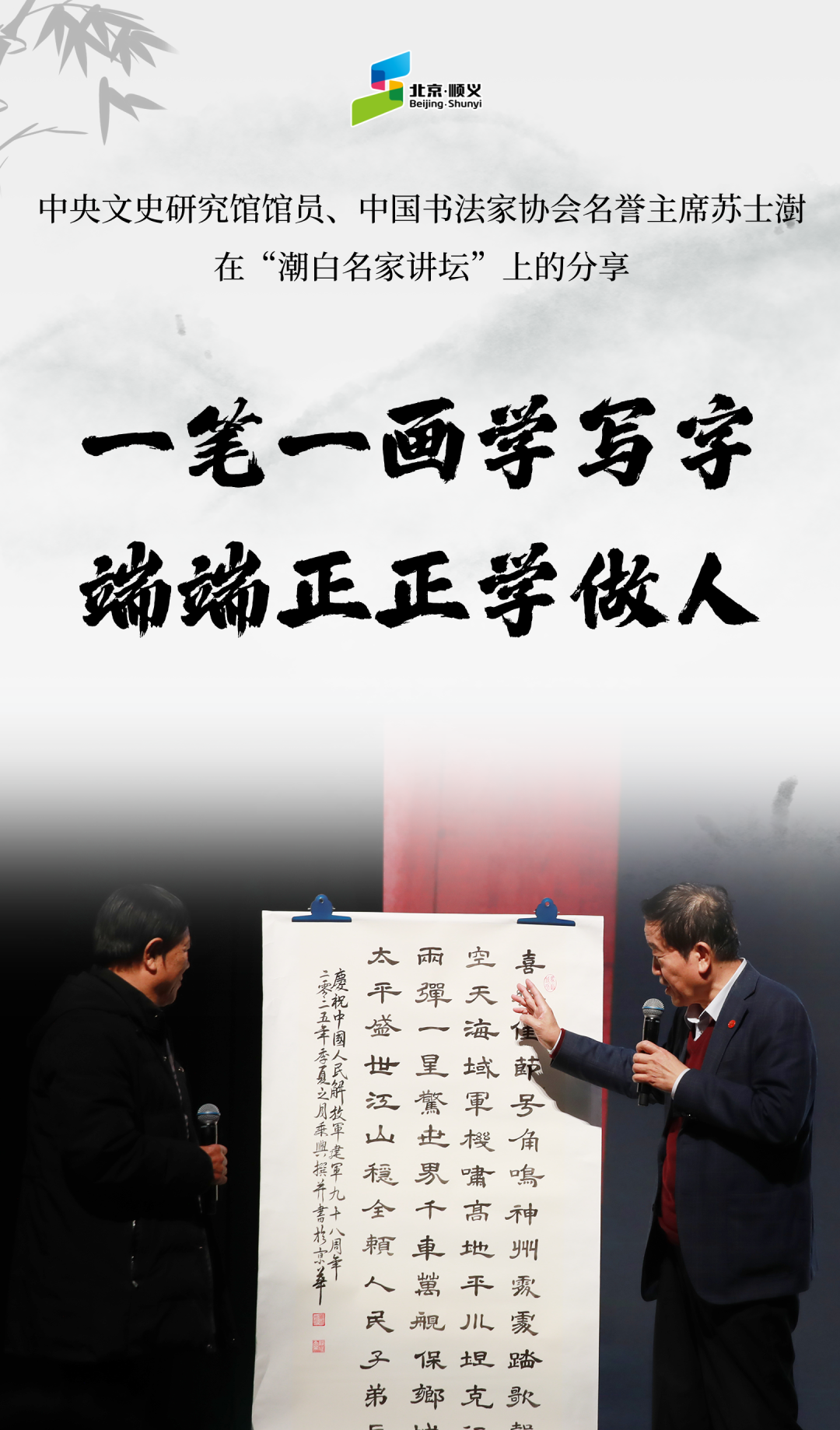 潮白名家讲坛首讲超燃 来源:北京顺义 发表时间:2025-11-10 微博 QQ空间 A- A+ 打印 11月9日9时30分,“潮白名家讲坛”首场活动启幕,特邀中央文史研究馆馆员、中国书法家协会名誉主席苏士澍先生以“写好中国字做好中国人”为主题作专题分享,生动解读汉字书法的魅力。 每个汉字都蕴藏着文化密码 写好中国字不只是技能 更是责任 上一篇:声环境越来越好,顺义多举措解决“家门口”噪声问题 下一篇:“潮白名家讲坛”启动!首场书法艺术盛宴滋养市民心灵