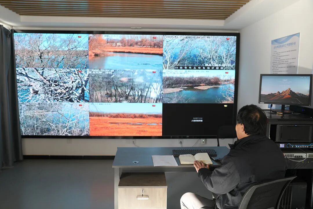 汉石桥湿地公园工作人员对鸟类进行监测。