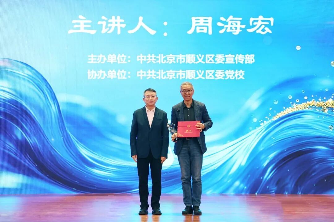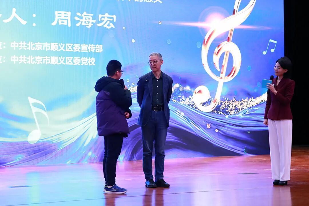 区委书记龚宗元为周海宏颁发“潮白名家讲坛主讲专家”聘书及奖杯。周海宏结合自己多年来从事音乐研究和教学的心得,从音乐的基本属性、音乐表现的机制、音乐欣赏的基本方式等方面,深入浅出地解释了音乐作为艺术形式的独特魅力,并呼吁大家突破常见的音乐欣赏误区,学会用更开放的心态去理解和接纳不同的音乐类型。