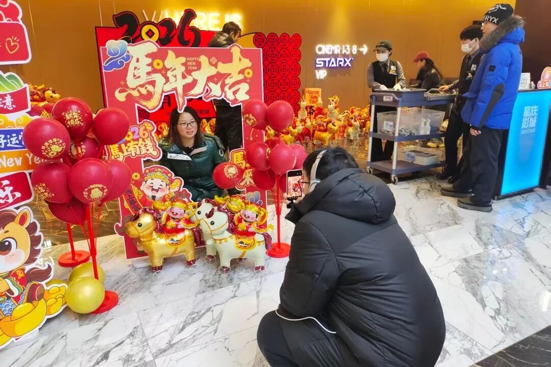 子夜临近,星轶影城影厅内,泡泡机吹出漫天晶莹的泡泡,折射着斑斓光影。影城设置了多个拍照打卡点,小红马等装置吸引了市民驻足拍照。现场更有多轮抽奖活动,奖品丰富,包括免费观影券、电影周边礼盒等,令人心动不已。