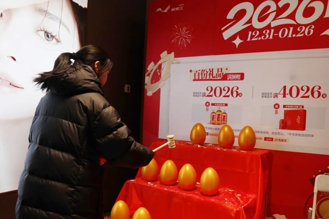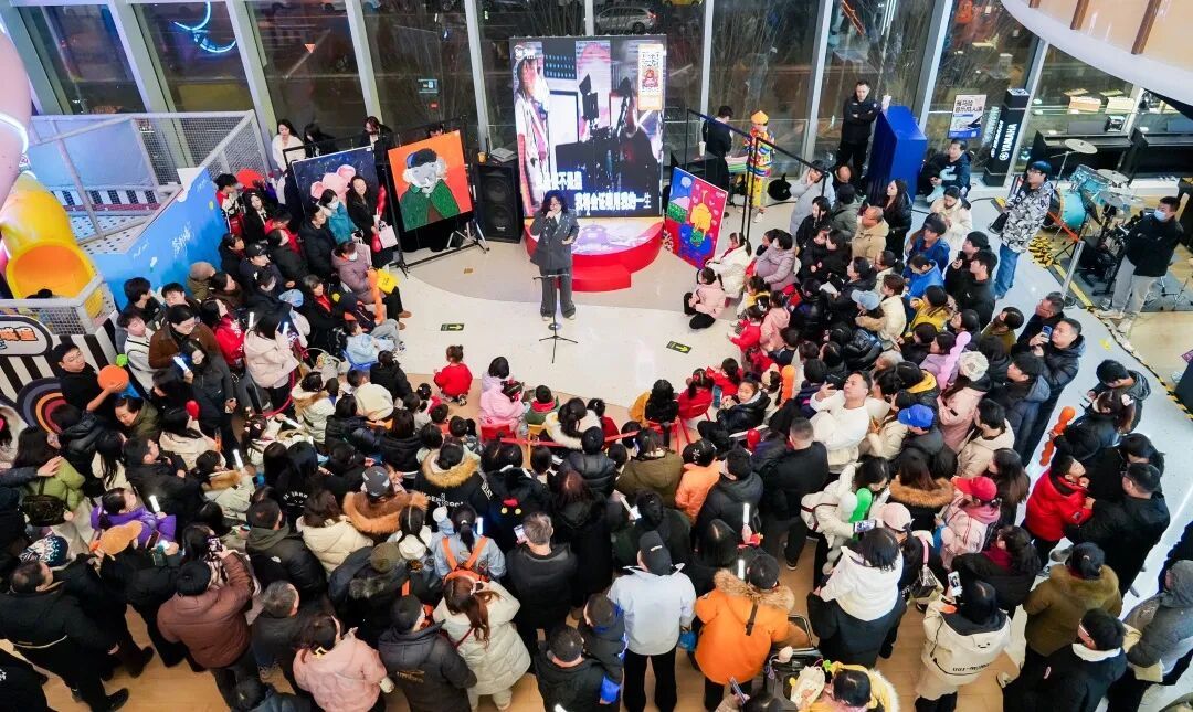 一楼的“新年心愿霸屏”互动墙成为情感枢纽,“奋进2026,一切顺意!”“爸妈身体健康!”“2026要幸福!”……一行行心愿滚动刷新,汇成一片真挚的愿望海洋。三楼城市会客厅歌友会现场,乐队歌声与观众合唱交织。惊喜快闪与互动送礼环节穿插其间,欢呼声与笑声此起彼伏。
