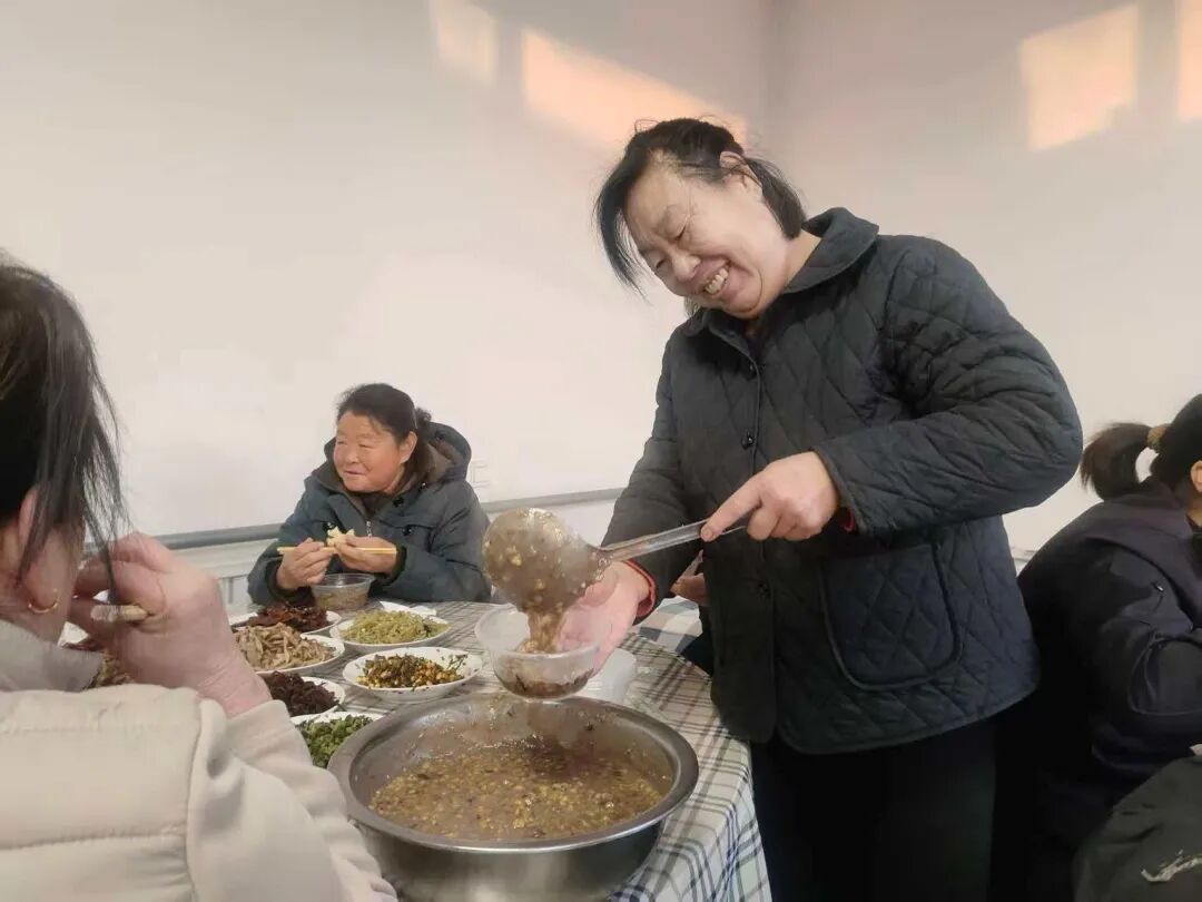 为村民熬腊八粥,始于十几年前的一个念头。孙淑文看到村里的年轻人忙工作、老年人独居,腊八节总是冷冷清清,她就冒出一个念头:不如我请大家喝粥吧。第一年,来了十几位邻居;如今,全村老小都会来。