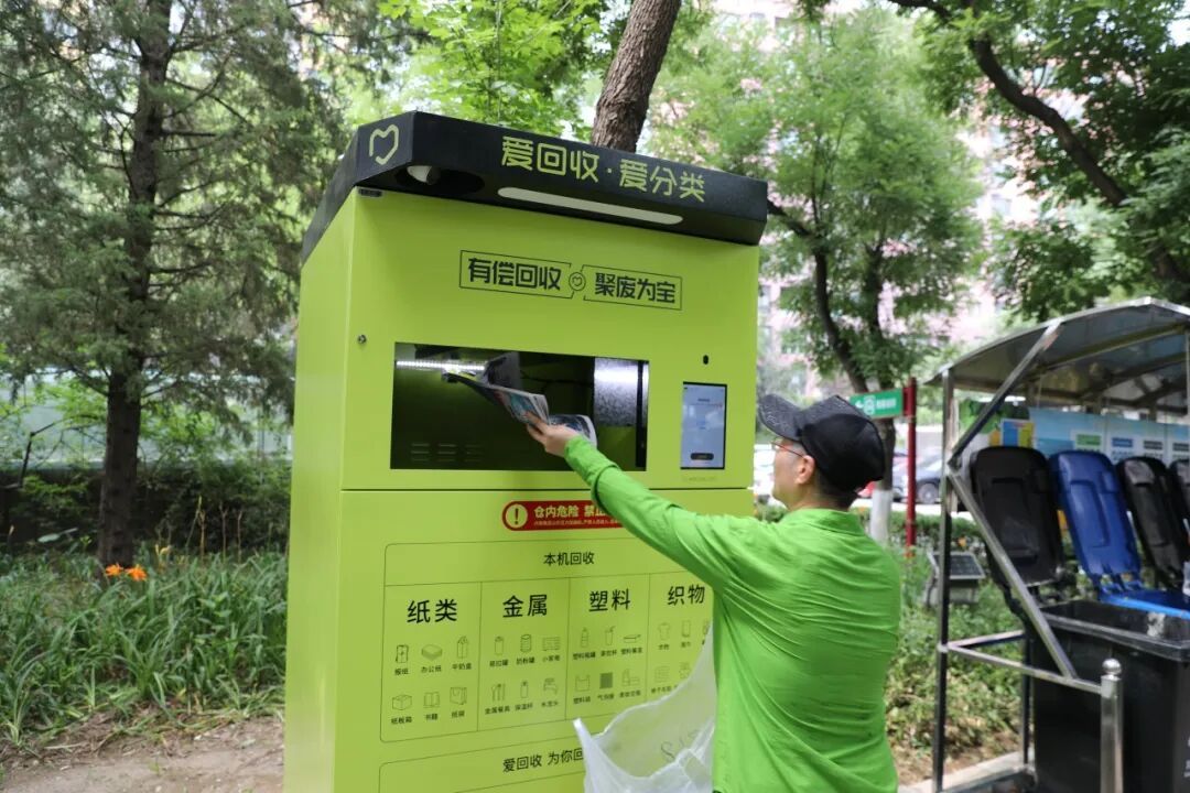 旺泉街道万科四季花城居民使用智能回收箱。
