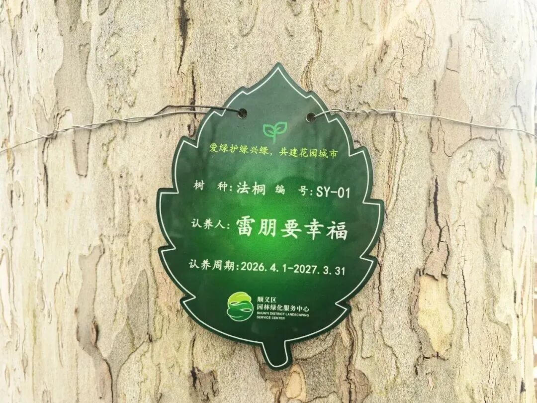 在顺义,爱树护树的行动也延伸到更多市民身边。区园林绿化服务中心推出区属公园树木认养活动,市民可以认养一棵树,与它建立一份特别的联系。