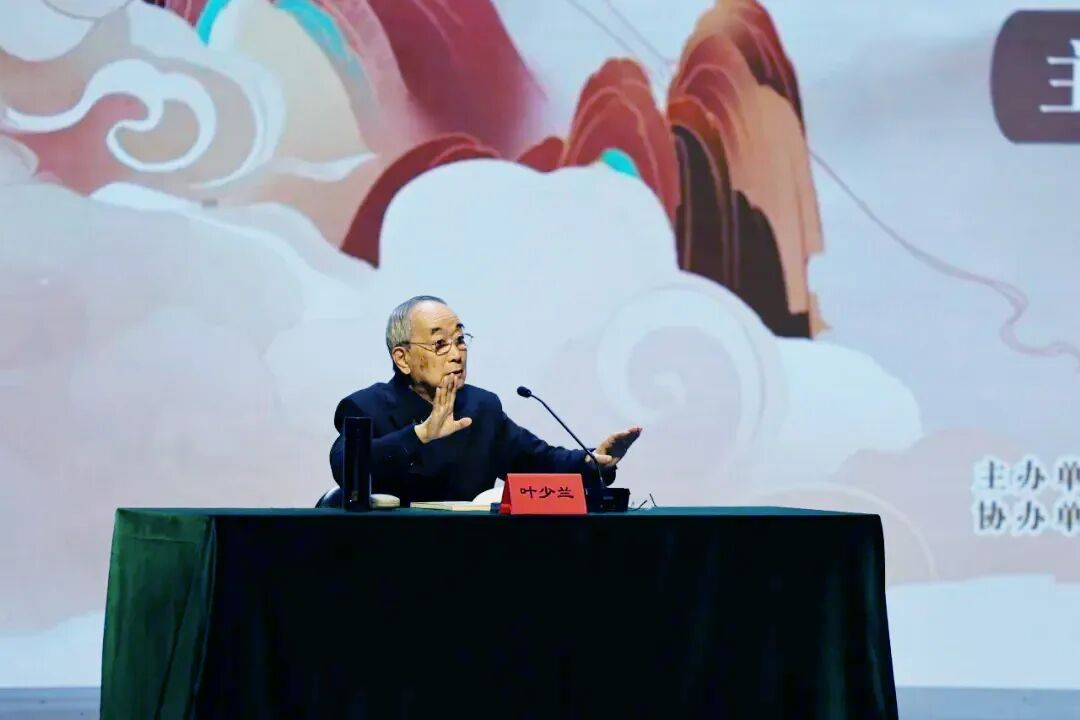 现场,叶少兰先生精神矍铄、从容开讲,以真挚的语言,回望与京剧相伴的艺术历程。他以七十余载从艺生涯为脉络,系统梳理京剧的起源与发展,从四大徽班、徽汉合流讲到生旦净丑行当划分,细致解读唱念做打、手眼身法步的表演精髓。他结合叶派艺术创始人叶盛兰先生的艺术历程,深入阐释叶派小生“文而不媚,武而不粗,穷而不厌,儒而不俗”的独特美学,揭秘舞台背后数十年如一日的打磨历程,畅谈传统艺术在新时代的传承与创新。