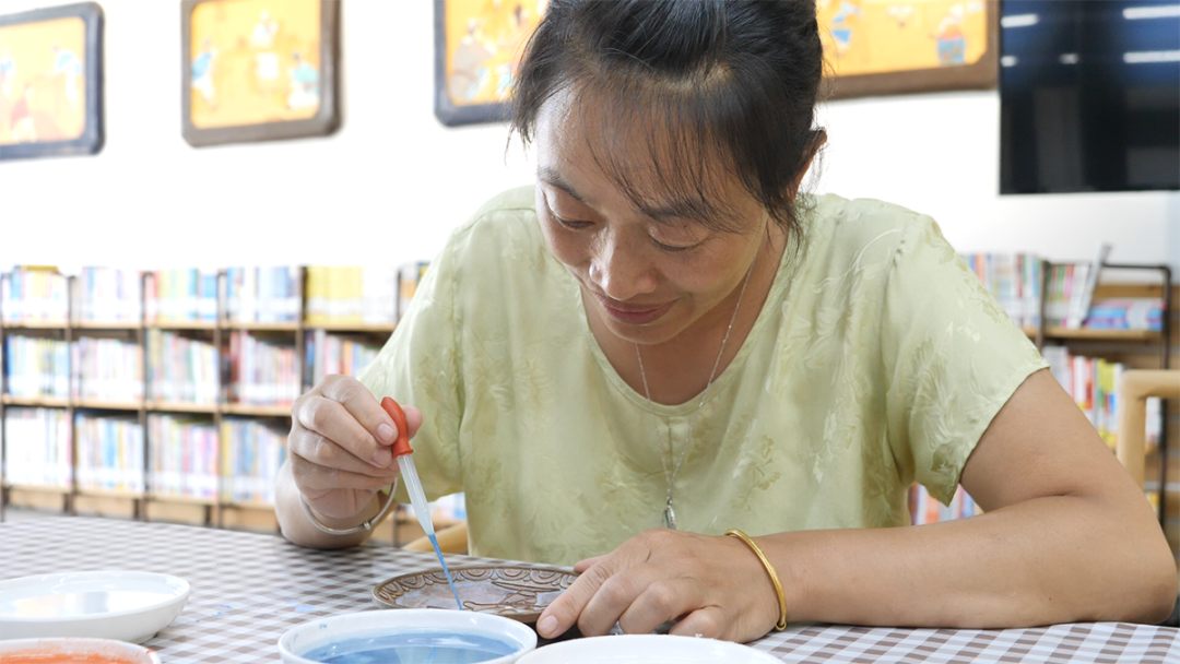 市民体验景泰蓝点蓝工艺。