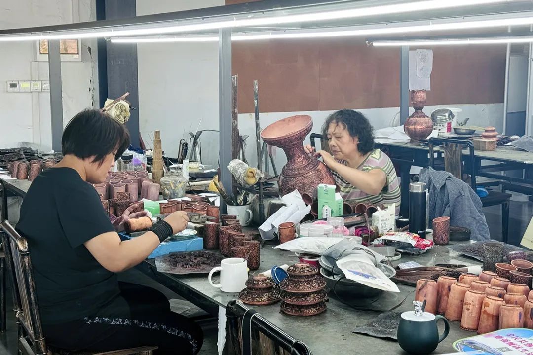 工人们进行掐丝工艺制作。