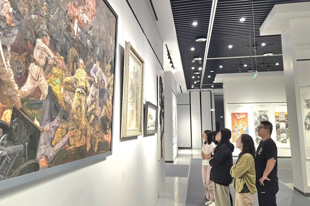 展厅内,80幅精选书画作品有序陈列,涵盖书法、国画、油画等多种艺术形式。展览以艺术之笔回溯抗战峥嵘岁月,让市民在笔墨丹青中重温历史记忆。