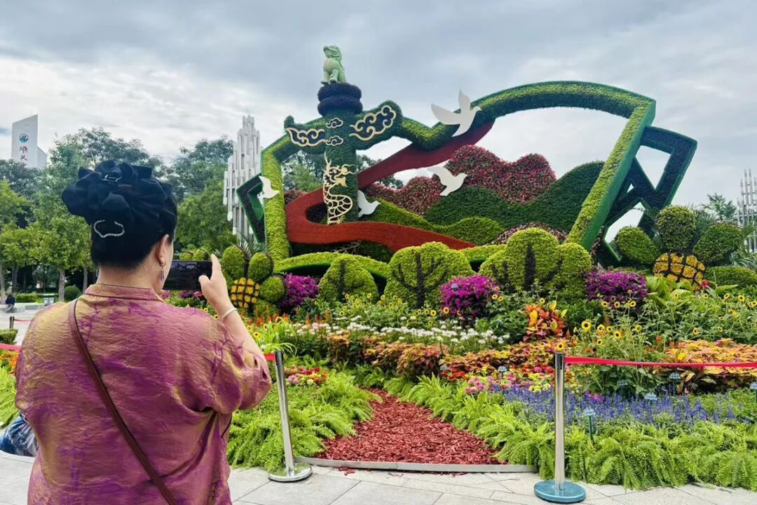 本次花坛摆放首次采用“可进入式立体设计”。街心公园管理办公室主任张中雨介绍:“我们在花坛内部预留了平缓步道,市民可以近距离触摸花草、欣赏景观细节,增强了市民的互动感。”