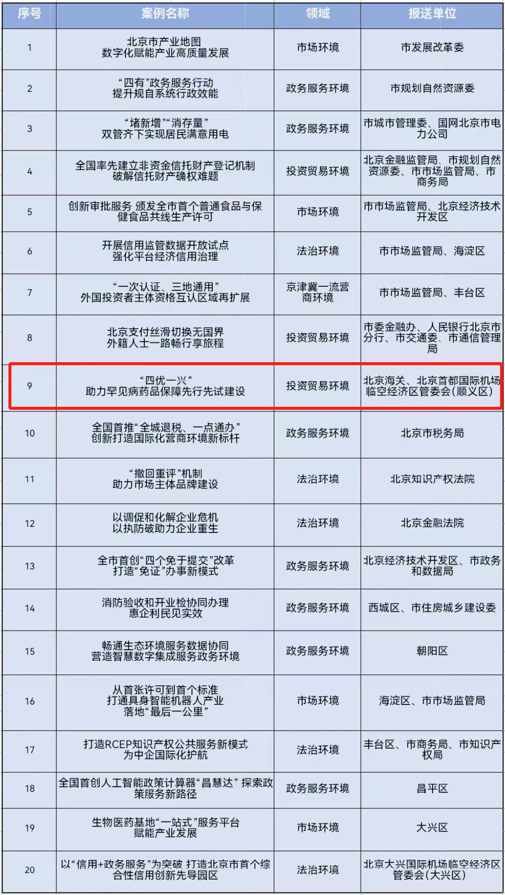 日前,北京市2025年首批营商环境改革创新案例名单公布,北京海关、首都机场临空经济区管委会联合报送的“‘四优一兴’助力罕见病药品保障先行先试建设”创新实践案例成功入选。案例聚焦天竺综保区政策资源禀赋,通过“四优一兴”罕见病药品保税监管保障机制,助力进口罕见病药品由“人等药”转变为“药等人”。