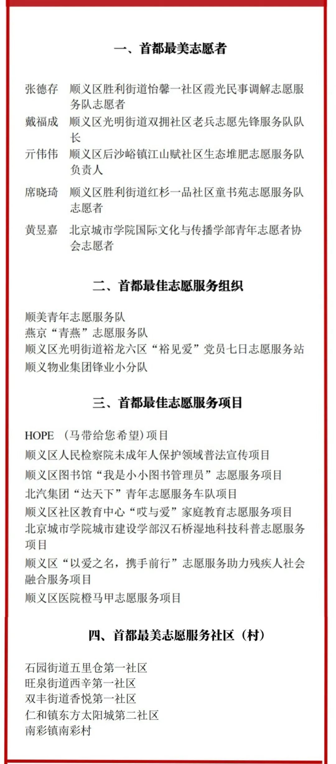 顺义区22个典型上榜2024年度首都志愿服务“四个100”先进典型名单。