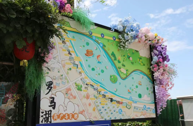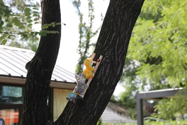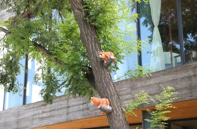 木本曼陀罗、蜀葵、月季在花池与绿地间绽放,花簇顺着墙壁“流淌”,小动物雕塑藏在树影里,转角偶遇的彩绘更是让人会心一笑。在这里漫步,仿佛一秒穿越到欧洲小镇,既有文艺韵味,又有自然的悠闲惬意。