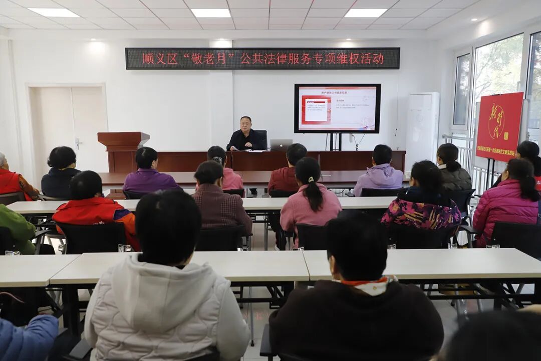 “子女如果不履行赡养义务怎么办?”“目前最常见的养老诈骗手段有哪些?”在旺泉街道石门苑第一社区活动室内,一场公共法律服务专项维权活动专题讲座正在开展。顺义区法律援助志愿者、北京市顺新律师事务所律师崔贤东围绕《中华人民共和国老年人权益保障法》,从立法目的、家庭赡养与抚养、社会保障、社会优待等方面进行详细解读,引导老年人学会运用法律武器维护自身合法权益。
