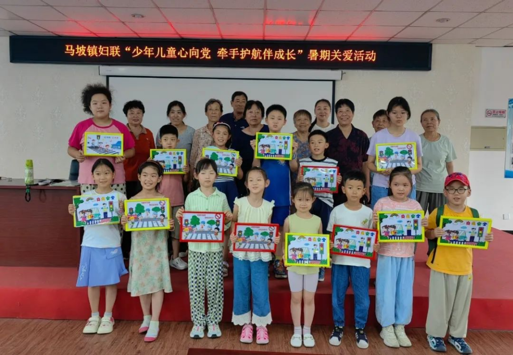 在马坡镇妇联暑期儿童关爱服务活动的现场,老师以绘本领读的方式带领孩子们认识常见的交通标志、理解信号灯含义以及日常交通安全规则等知识,指导孩子们充分发挥自己的想象力,DIY交通安全纽扣画。