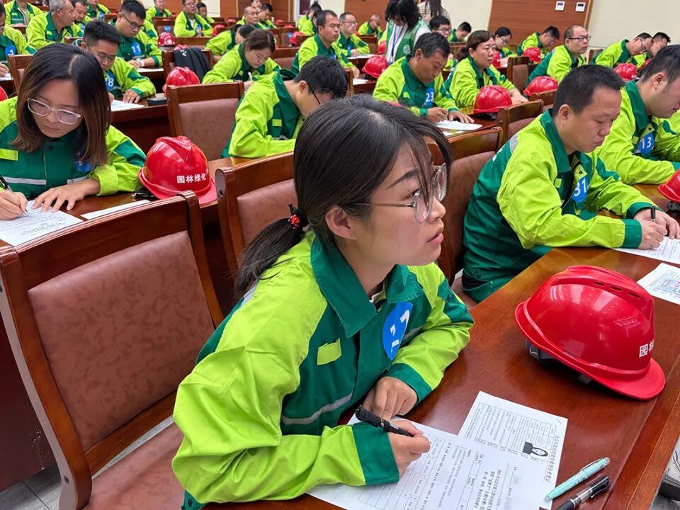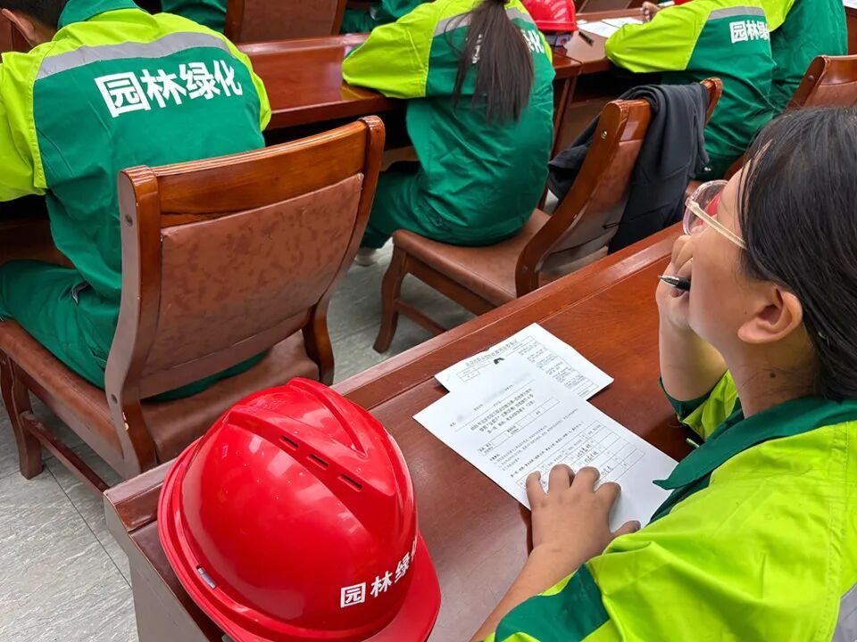 本次比赛包含理论、实操两项内容。理论考试内容涵盖树木生长习性、病虫害识别、植物分类等。选手们沉着答题,这份安静的较量,为接下来的修剪比拼“埋下伏笔”。