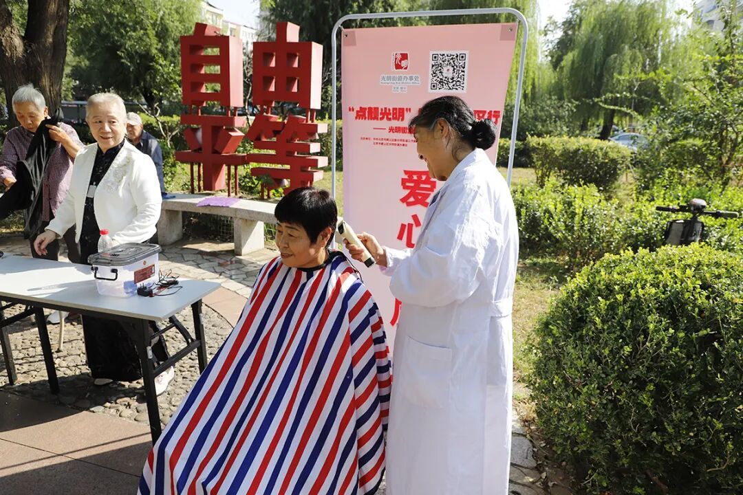 便民服务市集同步热闹开市。“爱心发屋”旁,理发师为居民义务理发。“健康驿站”旁,中医理疗师为居民把脉,提供健康指导。“巧手缝补区”则免费为居民扦裤边、缝补衣服。“旧物交换区”,市民可以用闲置书籍、玩具、自行车交换盆栽和日用品……丰富多样的便民服务诠释了“邻里相亲、守望相助”的好风气。