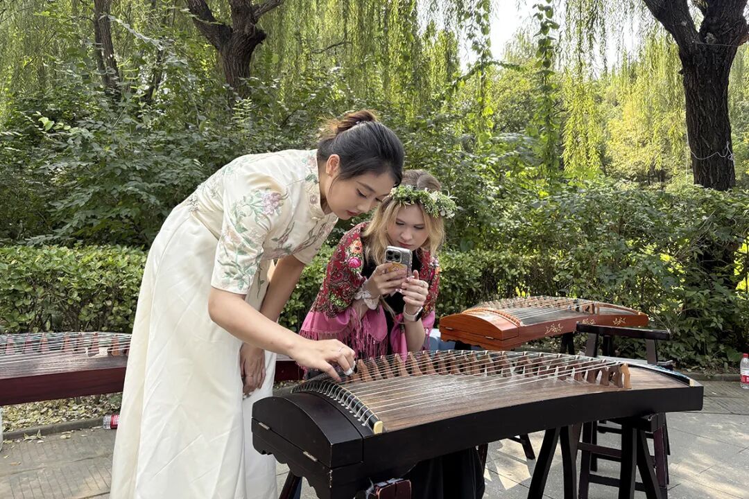 中秋节前夕,后沙峪镇江山赋社区内桂香浮动、雅韵悠扬,来自12个国家的50名留学生相聚于此,共同参加以“月映非遗・江山赋秋”为主题的中秋非遗雅集活动。