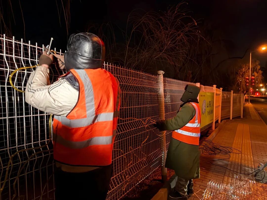 年味儿的背后,是工人不辞辛劳的付出。深夜12点的右堤路,工人仍在忙碌,认真安装着“骏马奔腾”路侧景观灯带。他们用坚守为顺义的新春添彩。