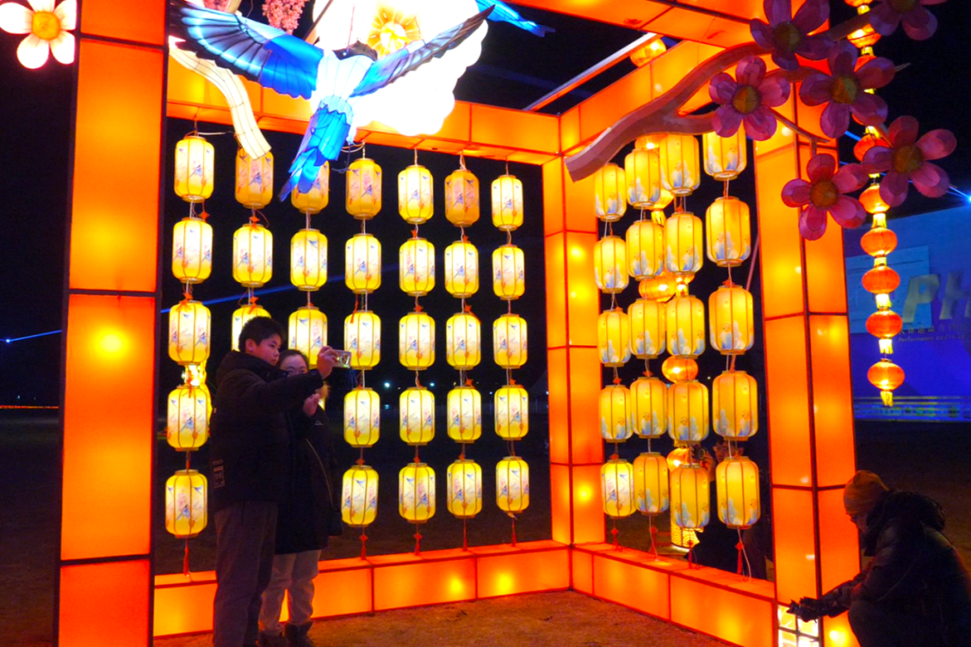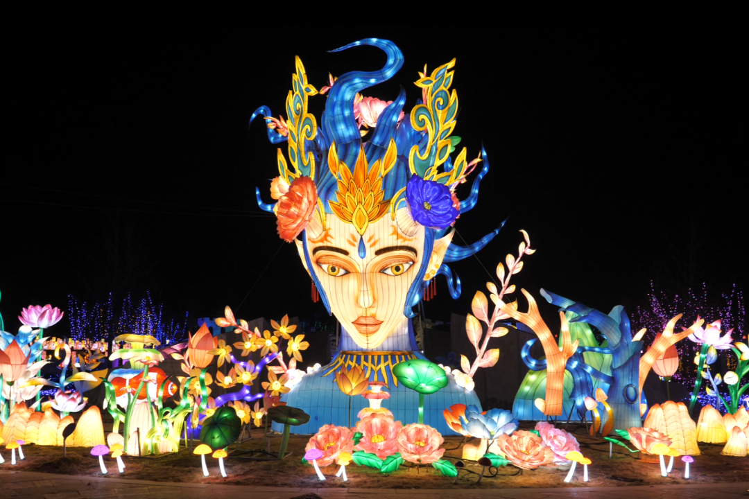 大年初一,北京国际鲜花港的万盏彩灯次第点亮。