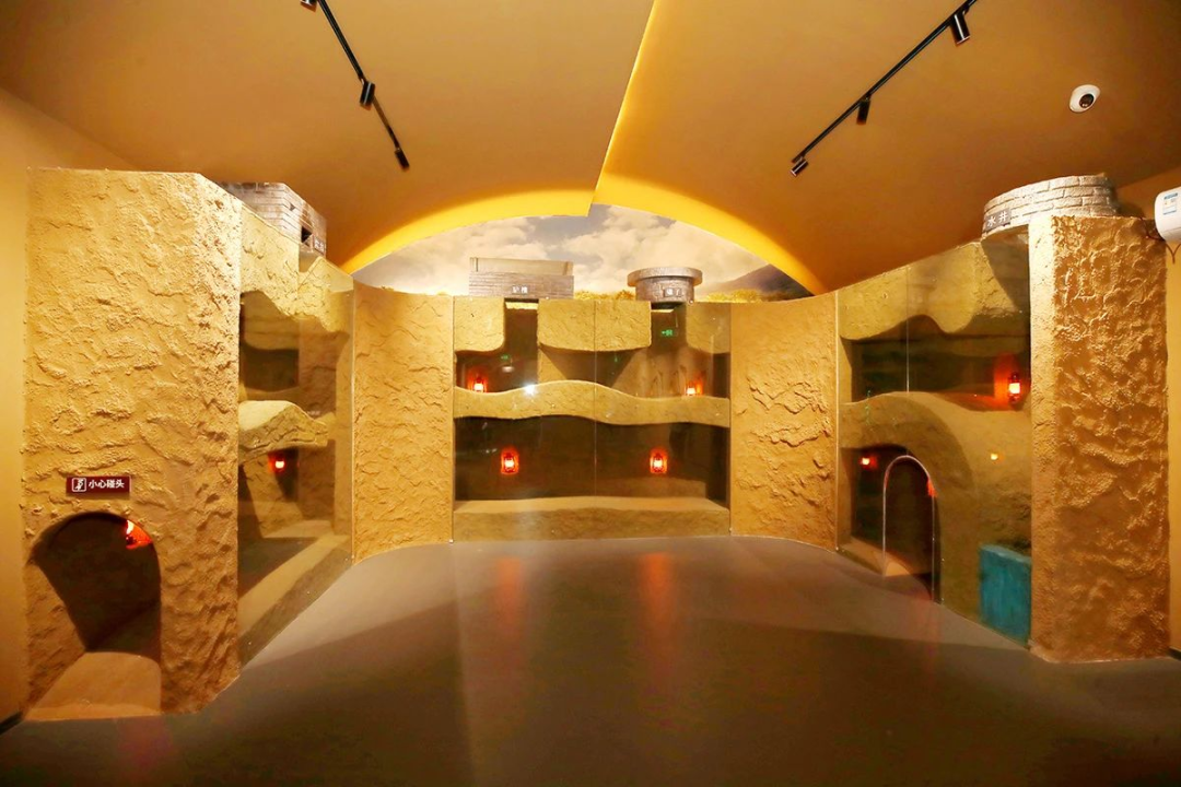 除了传统图文展示,馆内还增设多个互动装置。观众只需点击“游击战术制胜法宝”触摸展示屏,麻雀战、地雷战、地道战等敌后游击战术逐一呈现。纪念馆还特意增设了一处地上情景体验区,模拟地道更接近1.4米的原始平均高度,市民可以在狭窄的空间中行进,真实感受地道结构。展厅内还设计了挖地道触屏游戏、5分钟动画片讲解地道战历史等,通过多元展陈方式提升参观体验。作为爱国主义教育基地,这座承载着抗战记忆的红色地标,通过持续创新的教育形式,让革命传统在新时代焕发新的生机与活力。