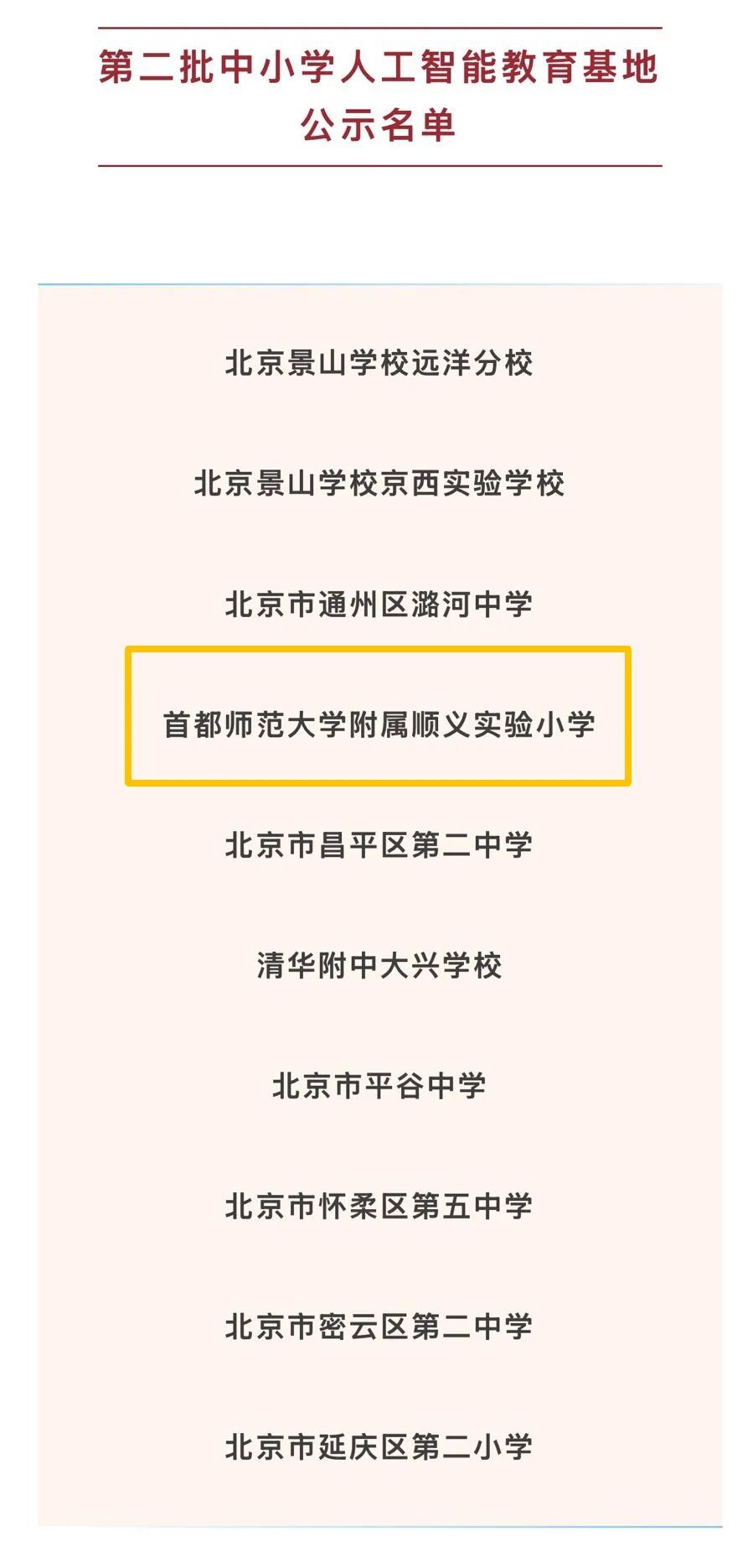 11月16日,第二批中小学人工智能教育基地名单在教育部网站公示结束。北京市共有10所学校入选,首都师范大学附属顺义实验小学(以下简称“首师大顺义附小”)榜上有名,成为顺义区唯一入选的学校。