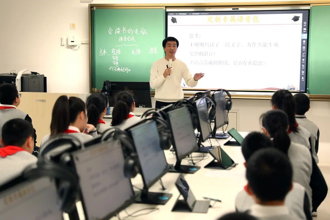 在创新教学模式与学科融合方面,学校推动AI教育真正落地课堂。学校在四年级试点“双师课堂”,借助飞象人工智能课程资源,引导学生用AI大模型完成校园生活12项常见任务,有效提升逻辑与创新思维。在学科融合方面,语文课上学生借助AI生成写作思路并优化作品,体育课利用AI分析运动强度与心率,英语课则通过AI语音识别测评口语水平。同时,学校构建“数据循证教研”模式,依托课堂诊断数据持续改进教学,使学生课堂参与度显著提升。