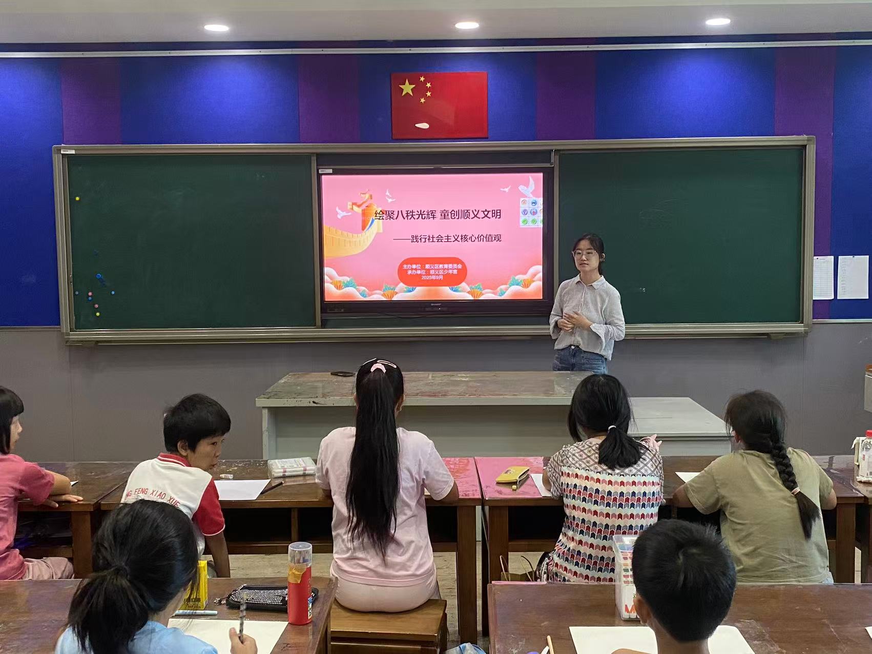 9月14日,由顺义区教育委员会主办,顺义区少年宫承办的“绘聚八秩光辉,童创顺义文明”——践行社会主义核心价值观教育活动成功举办。本次活动以艺术教育为载体,将社会主义核心价值观中的“文明”理念深度融入教学与创作,深刻感悟文明内涵、践行文明行为,让“文明”种子在童心沃土中生根发芽。
