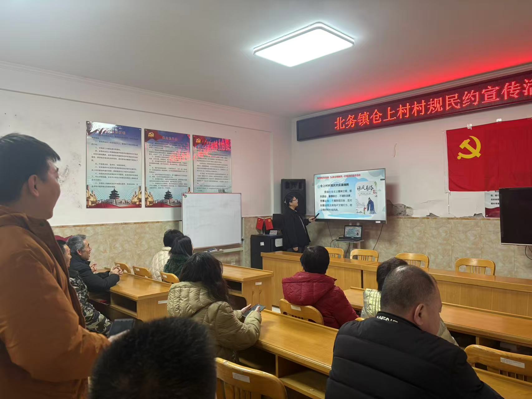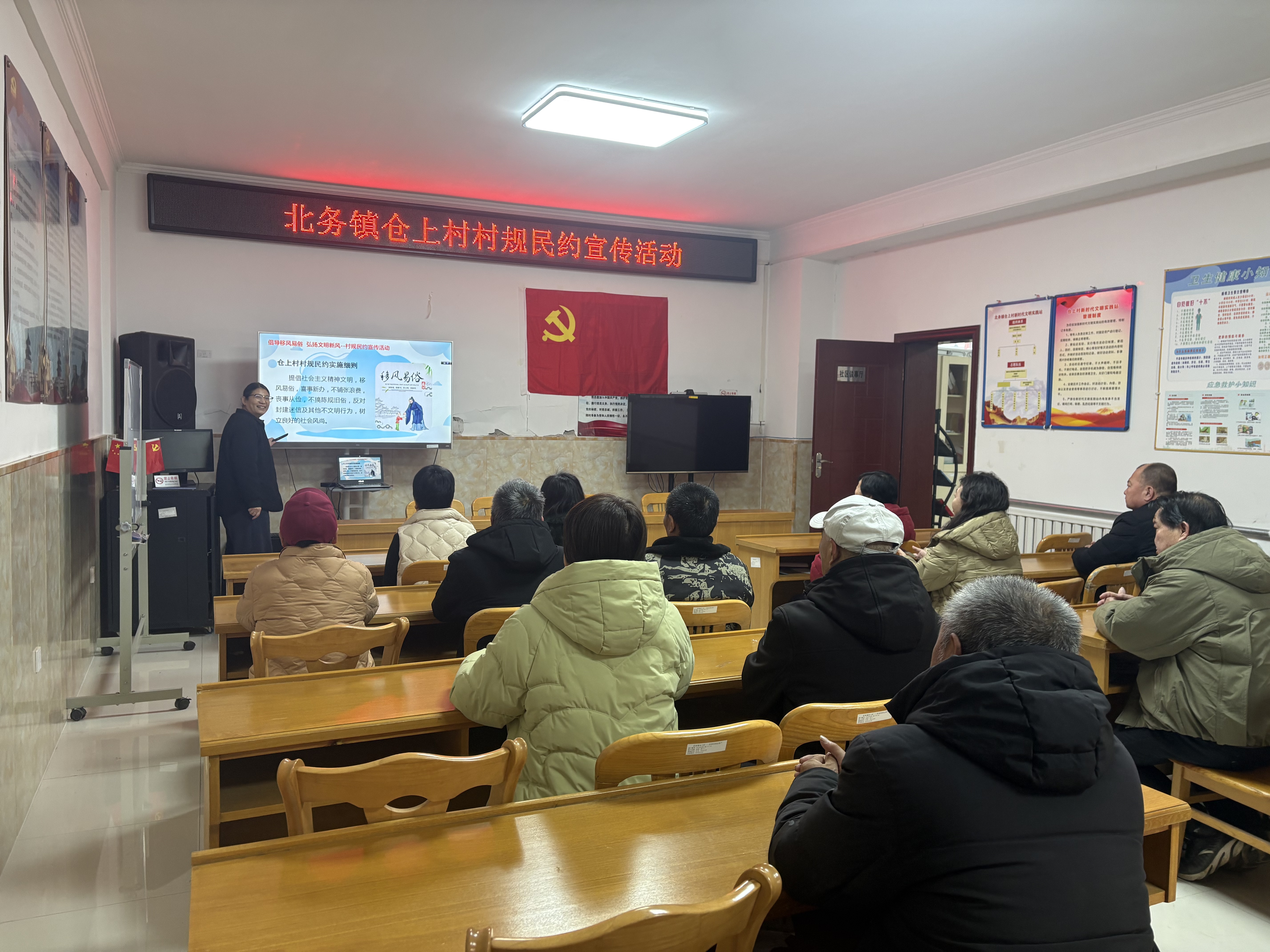 活动聚焦仓上村村规民约及规约实施细则的内容展开宣导。村干部详细阐述了关于婚丧嫁娶简办新办、反对铺张浪费的具体倡导;明确了远离黄赌毒、抵制封建迷信的行为底线;倡导了邻里间团结友爱、和睦互助、言行文明的行为准则。讲解紧扣村民日常生活,用朴实语言解读条文背后的文明理念与共同责任,引导村民理解、认同并自愿遵守。