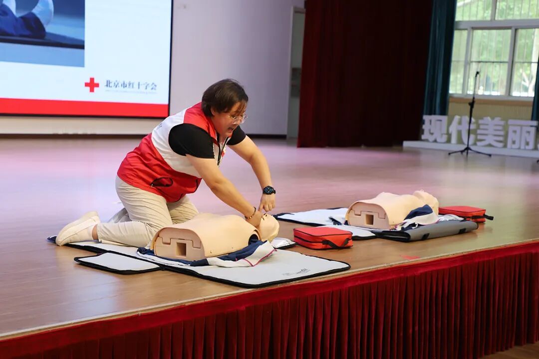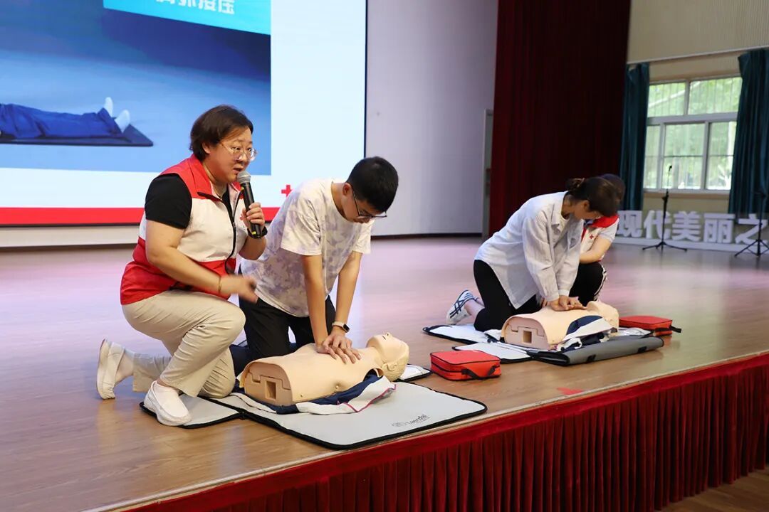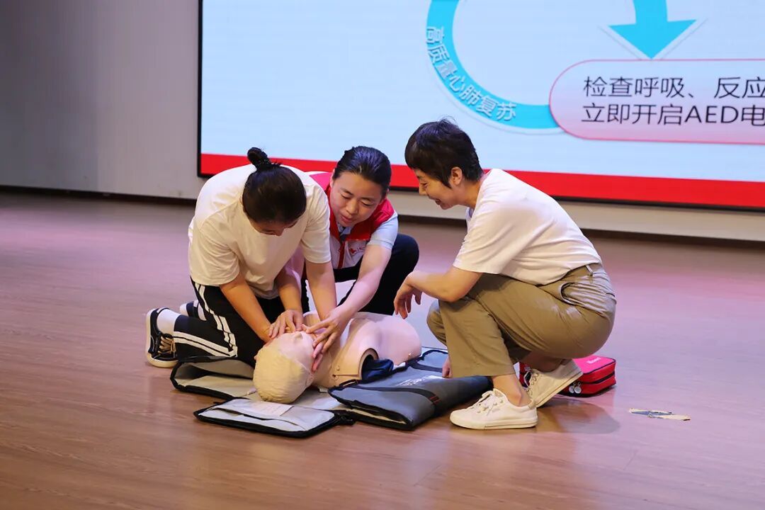 活动现场,区红十字会邀请资深讲师王雪娟讲授理论知识。讲师围绕红十字运动、心肺复苏技术、AED的使用流程等应急救护知识展开系统教学,并借助模拟人教具演示救护过程,手把手拆解动作要领,帮助志愿者更直观地掌握实操技巧,实现从现场“第一目击者”到应急救护“第一响应人”的角色跨越。