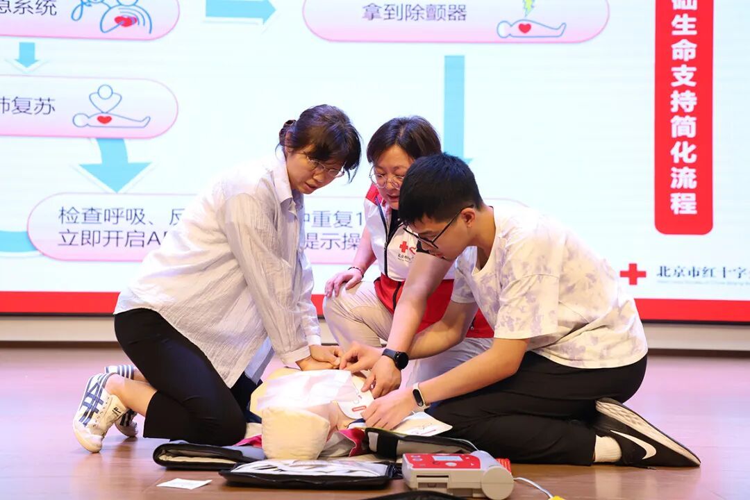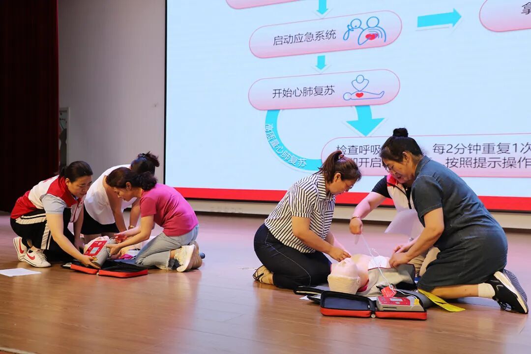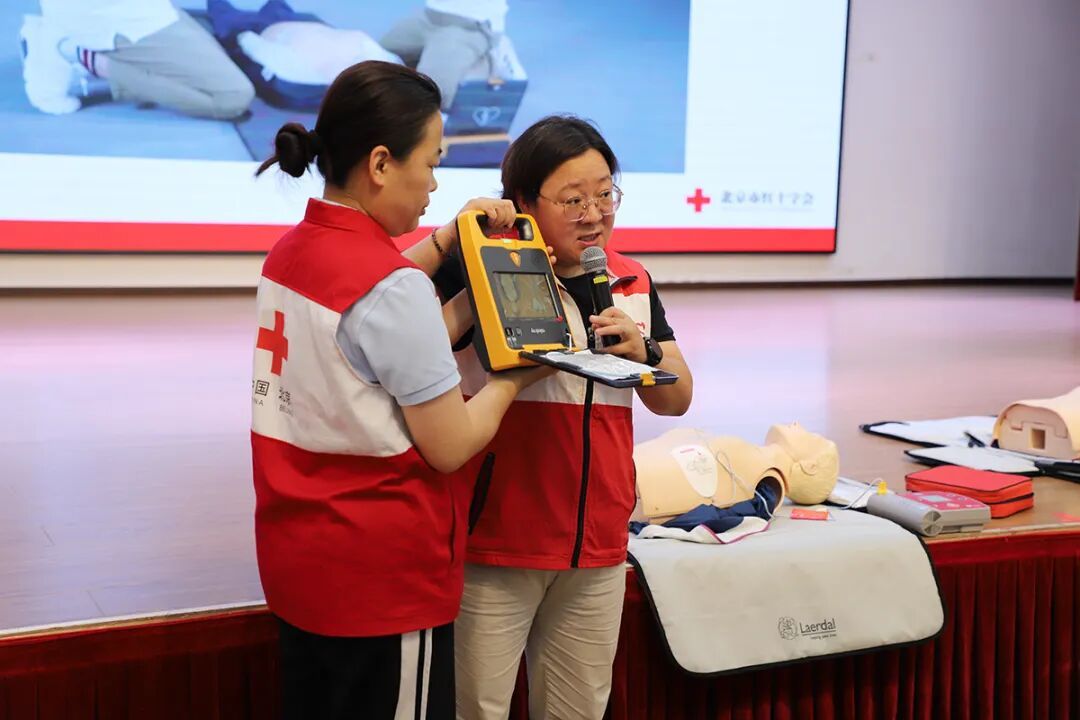 讲师演示心肺复苏技术和AED使用方法。