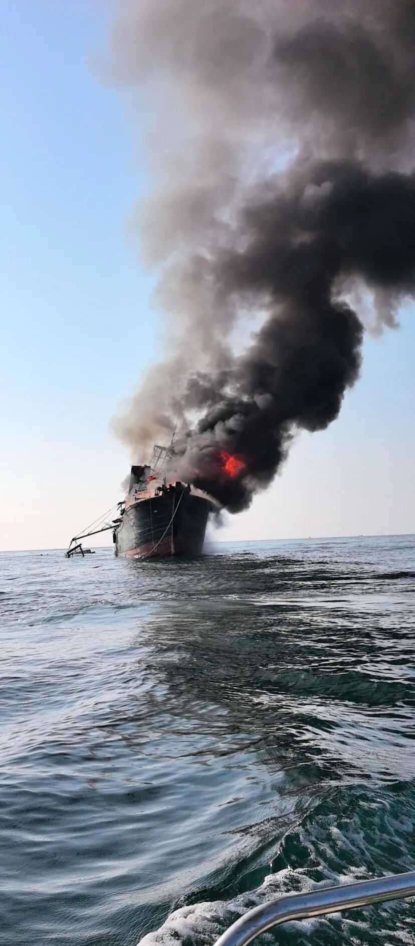 唐孟雄是退伍军人,那天他正和战友在广西北海银海区侨港镇附近海域海钓。航行途中,三人突然听到一声巨响,循声望去,在快艇左侧七八公里外,一艘渔船冒出滚滚浓烟,火势迅速蔓延。“当时我一眼就看出来不对劲,火肯定不小了。”唐孟雄告诉记者,来不及多想,三人立刻收起钓竿、调转船头,驾驶租来的快艇全速靠近起火渔船。