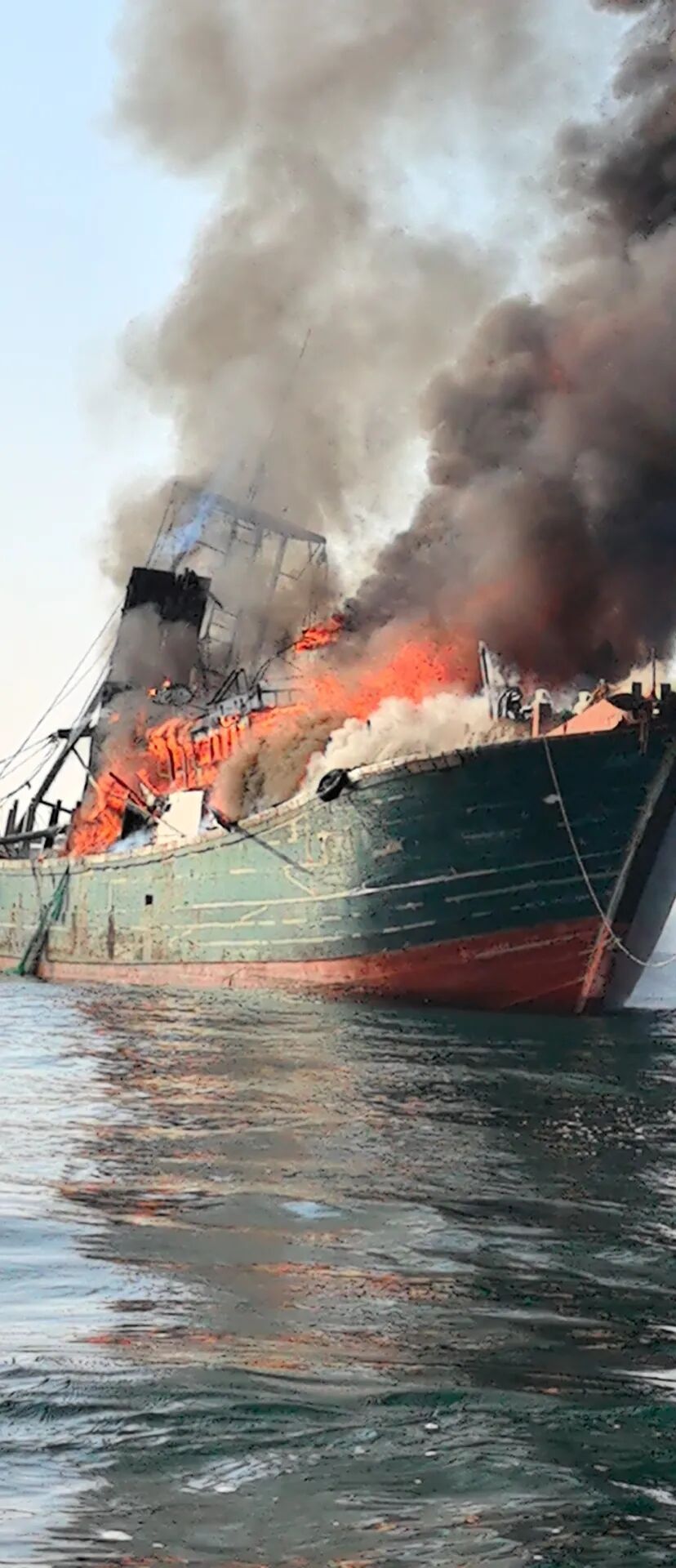 渔船着火现场。