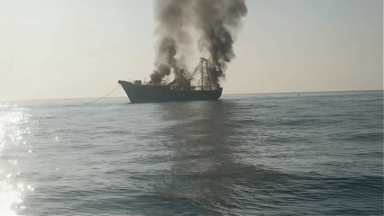 一艘渔船突然起火