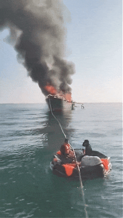 三名正在海钓的游客驾驶快艇冲向火海