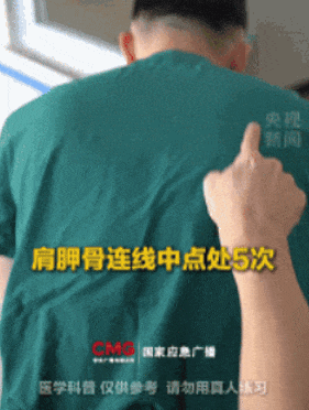 患者两腿打开,与肩同宽,身体前倾,用掌根大力拍击肩胛骨连线中点处5次,观察异物是否排出。