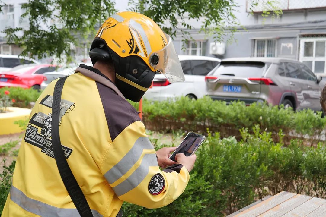 这种“顺手”早已成为吴春雨的习惯。在送餐途中,他随时关注社区环境问题,一旦发现小广告、路面破损等情况,便立即拍照上传至社区网格群,便于工作人员及时解决问题。