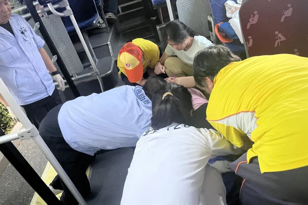 几分钟后,患者症状逐渐缓解,恢复意识。司机和热心乘客小心翼翼地将患者从座椅旁抬出,让其平躺在车厢的地面上。一名年轻女孩尝试用患者的手机联系家属,但未接通。
