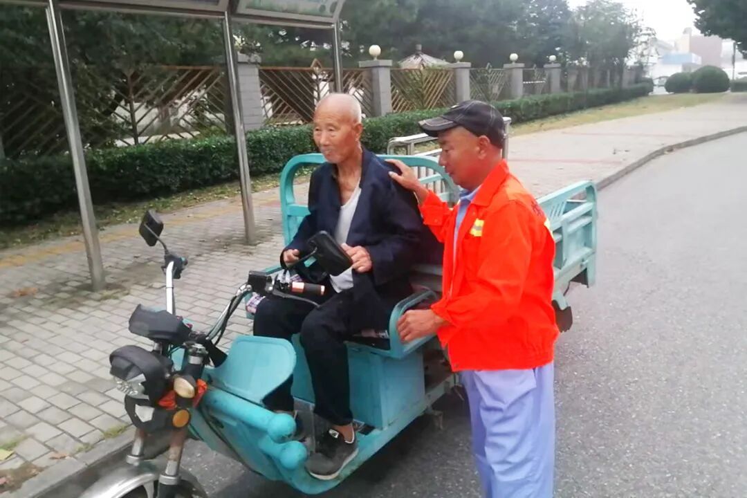 经沟通得知,老人今年81岁,家住前鲁各庄村,当天独自坐公交车前往北小营种子站买化肥,因为对周边环境不熟悉,返程时迷失了方向,记不清回家的路线了。考虑到天气及老人的身体状况,单德森第一时间将情况详细上报给片区负责人,在协调其他保洁员接替自己的工作后,他用自己的电动车送老人回家。在交接工作和送老人返程的路上,单德森不忘安抚老人紧张的情绪,随时留意老人的状态。