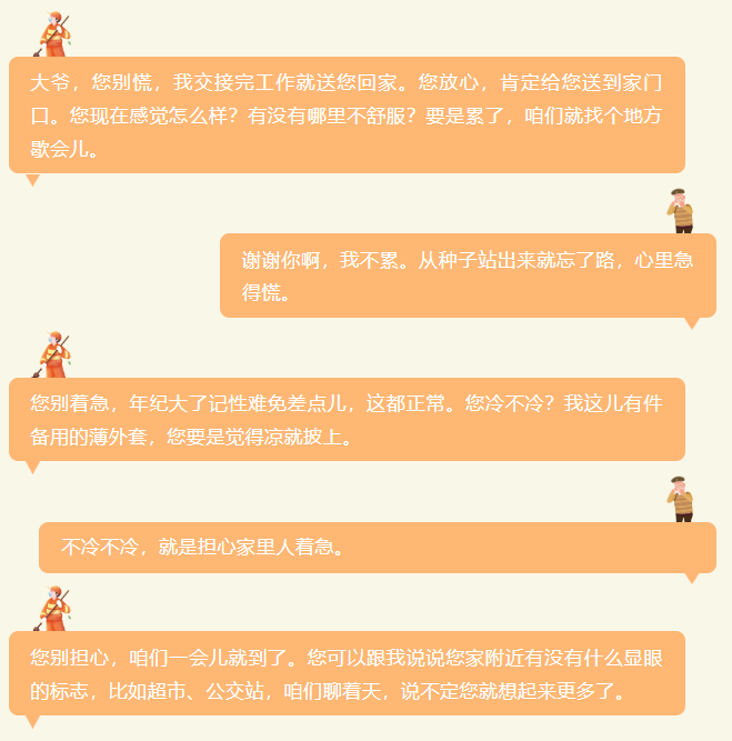 再到将老人安全送回家的暖心之举