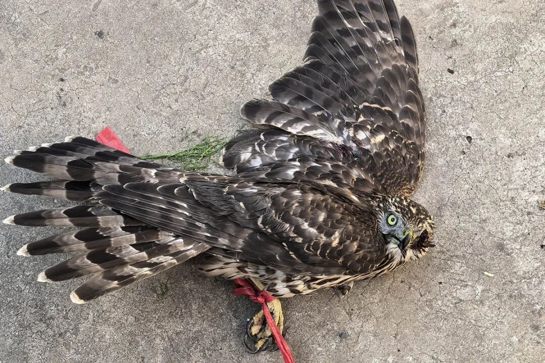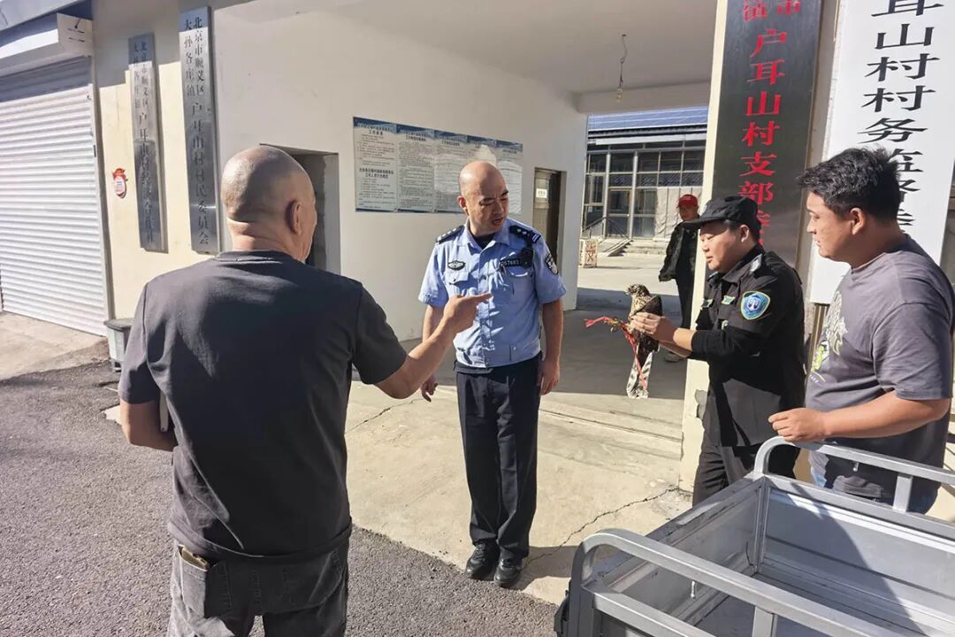 更让他揪心的是,这只老鹰左眼明显受伤,左翅膀还在渗血,羽毛上沾着未干的血迹,只能勉强挣扎却无法起飞。赵帅第一时间联系大孙各庄派出所,约定在村委会门口交接。